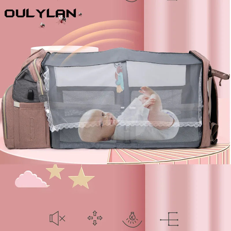- Mommy Backpack With Portable Folding Baby Crib Bag